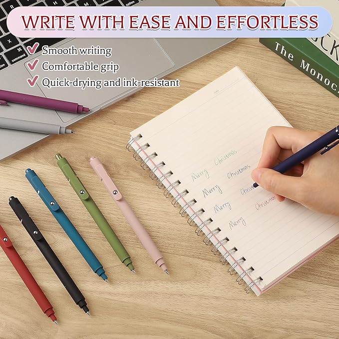 - COMFORTABLE WRITING EXPERIENCE--These colored pens for note taking feature a fine 0.5 mm tip and clear, quick-drying ink for consistent writing without smearing, keep your page clean during writing. The gel pen body has a frosted feel for a more comfortable grip. The gel pen body features a rotating steel ball that promotes thinking.