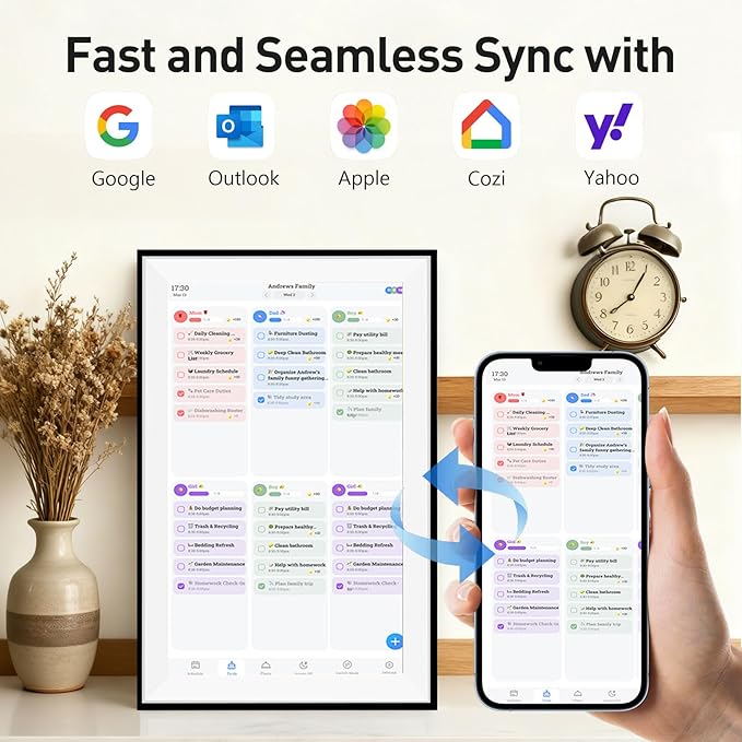 - 【Calendar & Planner Features】 This smart frame includes a digital calendar, to-do list, and family chore chart, so you can combine beautiful photo displays with practical home organization.