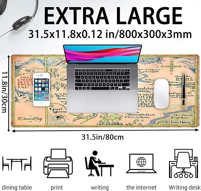 - Large size : xtended desk pad can accommodate keyboard, mouse and other office supplies, providing ample space for movement for gaming and work. Size: 31.5 inches (80 mm) x 11.8 inches (30 mm) x 0.12 inches(3 mm)