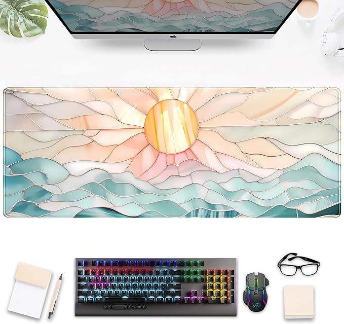 Modern Art Desk Mat Gaming Mouse Pad Stained Glass Computer Desk Pad, Large Laptop Keyboard Mat XL, Full Desktop Mat Glorious Computer Mouse Mat, Aesthetic Desk Decor Aesthetic 31.5" x 11.8"