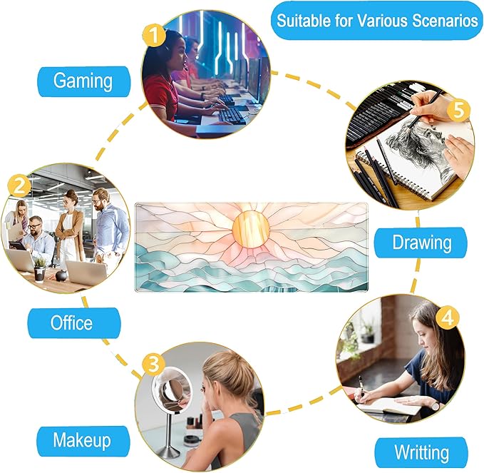 - Anti-slip base:The bottom of the desk mat is made of natural rubber base, soft and anti-slip, reducing hand fatigue, the mouse pad fits snugly on the desktop without the hassle of shifting