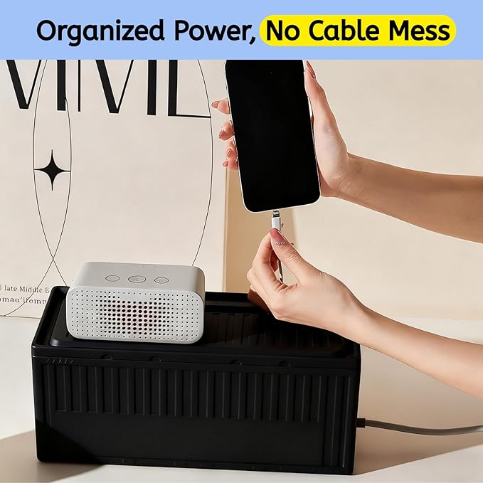 - Ventilated Design, Daily-Use Durable: Side openings and ventilation help dissipate heat and route cables cleanly, while the sturdy box body resists everyday pressure. Pair the box with clips/sleeves/ties to declutter faster and keep airflow around adapters.