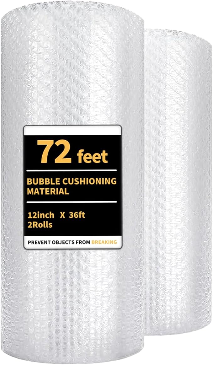 Bubble Cushioning Wrap 2 Pack 12 Inch x 72 ft Bubble Wrap for Packing,Moving Boxes and Shipping for Your Business,Perforated Every 12 in.Suitable for Filling Packaging Boxes.