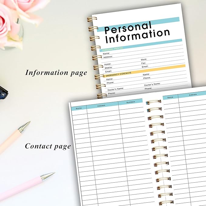 - Premium Design & Durability: Crafted with a sleek black hardcover and elegant gold spiral coil, this day planner is both stylish and functional. The spiral binding allows for 360° lay-flat opening, making writing and planning effortless. The thick, bleed-resistant paper ensures your pens, markers, or highlighters won't seep through, keeping pages clean and organized.