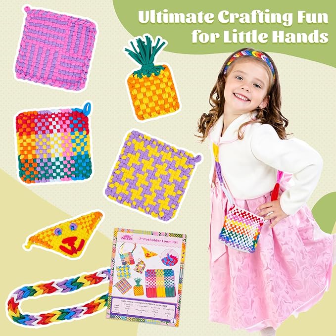 - Multiple Masterpieces: Works with 7" potholder looms. Create potholders, coasters, hair ties, bags, bracelets or decorative accessories — great for creativeactivities and play.
