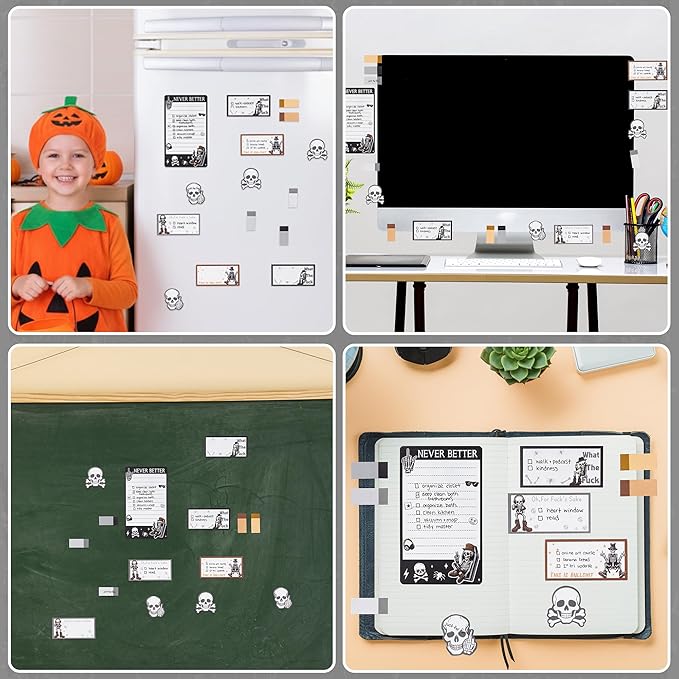 - Gift: This sticky notes set is the great gift for yourself, friends, classmates, students, school office supplies. And it is perfect for Christmas, Halloween, Day of the Dead, birthday, New Year's party and black theme party as funny gifts.