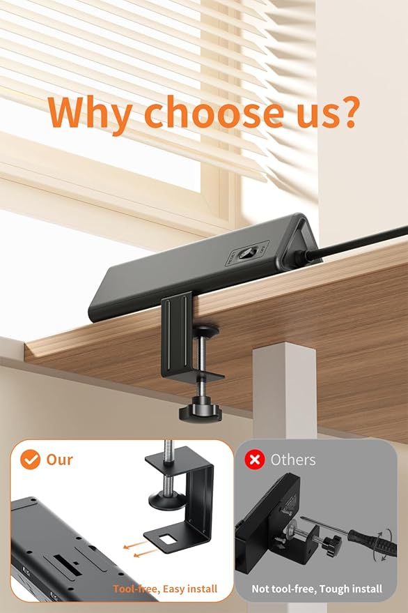 - Easy to Intall: Desktop power strip with USB ports is very easy to mount, you don't need to drill holes or purchase any additional tools, just fix the clamp to the table, and turn the button at the bottom to complete the installation.