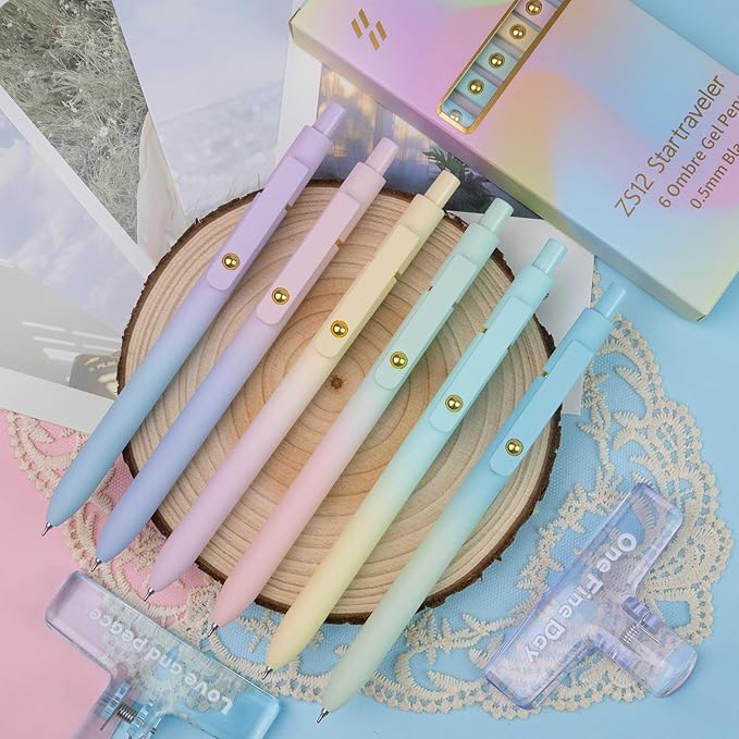Gel Pens, 12 Pcs 0.5mm Fine Point Smooth Writing Pens Japanese Cute Pens, High-End Series Black Ink Pens for Journaling Note Taking, School Office Supplies for Women Men (12 Pcs Ombre)