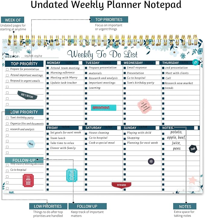 - Flexible & Convenient: The weekly to do list notepad undated planners provide 52 weeks of blank pages, free to write as you please. say goodbye to the constraints of dates & embrace true planning freedom! start planning anytime, from any year, any week, & tailor your unique planning system.