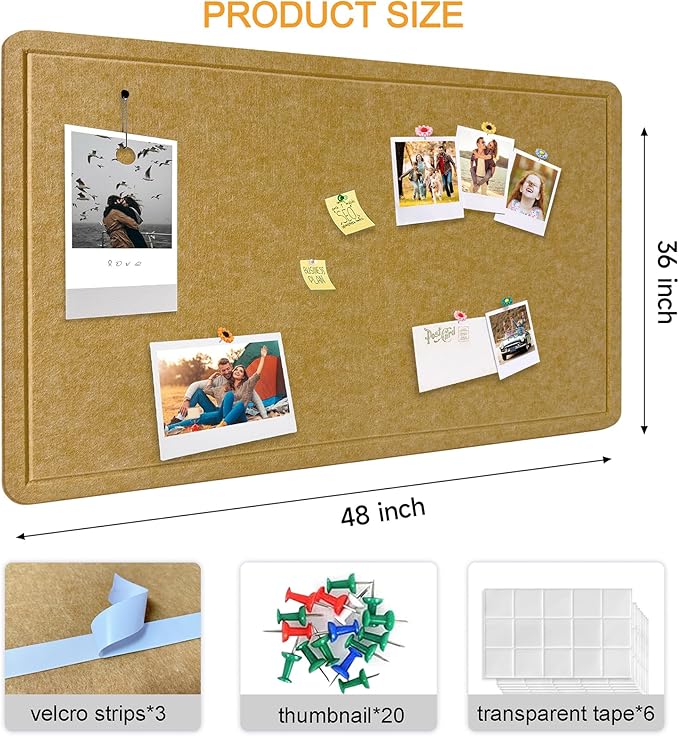 - š READY-TO-USE KIT: Includes 20 vibrant color push pins ā instantly organize notes, photos, and reminders on the premium thick felt surface. No extra purchases needed! (We also give you a removable adhesive strip)