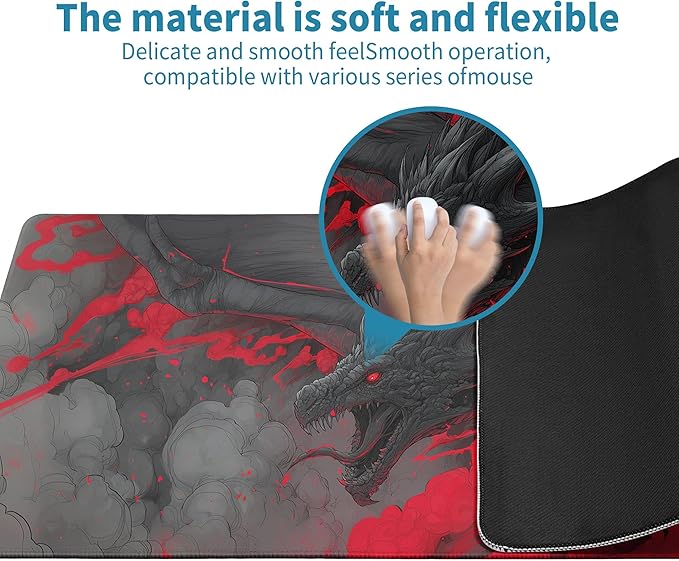 - ♥[HIGHLY DURABLE DESIGN]:Our A Red-eyed Dragon mouse pad long with delicate and durable stitched edges, which can effectively prevent fray and degum. It also enhances the aesthetic and lifespan of the mouse pad. You can use it easily.