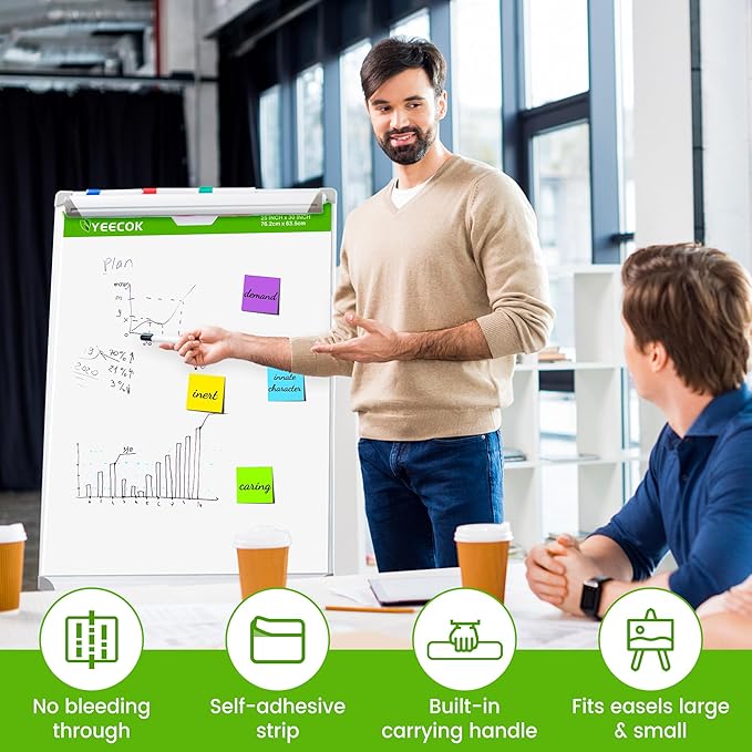 - 【Large Premium Chart Paper】YEECOK flip chart paper is 25 in x 30 in, 30 Sheets/Pad, 8 Pads/Pack, Perfect for Classroom and Meeting room alike.