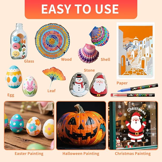 - Portable & Organized Packaging: Individually wrapped in a 7-layer pull-out case, these acrylic paint pens stay protected and organized. Theyβre travel-ready and designed for on-the-go use, without compromising ink longevity or color vibrancy