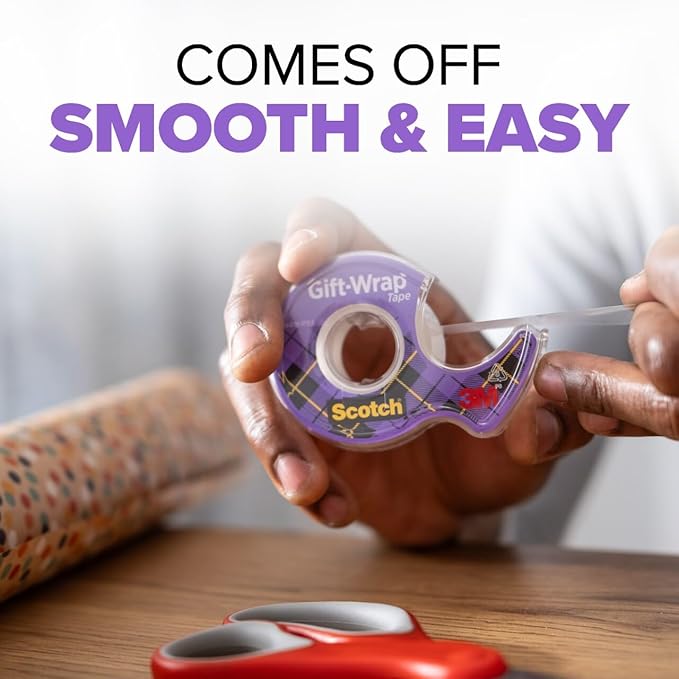 - GIFT TAPE WITH A SECURE HOLD: A tape dispenser with 6 rolls of Scotch Gift Wrap Tape give a secure hold to seal gift bags and keep presents securely wrapped