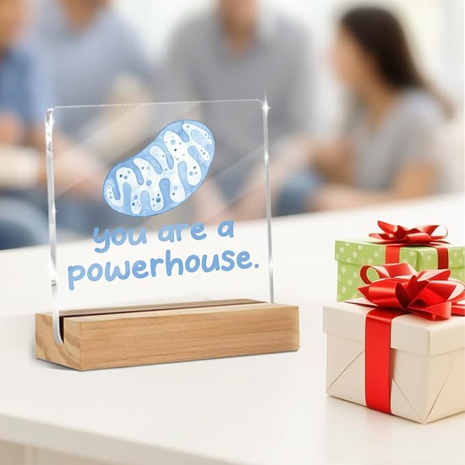 Biology Gifts for Women Men, Science Motivational Quote Sign, Thank You Gifts for Home Office Desk Acrylic Decorative Signs for Teachers Colleague Healthcare Providers, 4 x 4 Inch