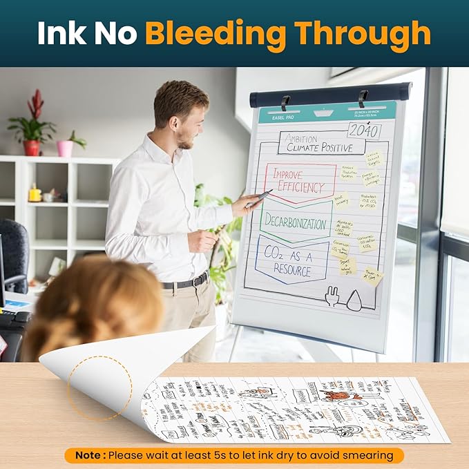 - ANTI-PERMEABILITY, NON-CURLING: The large size self-adhesive easel paper is made of special anti-permeability paper, which prevents marker or pen ink from penetrating and ensures a clean page. The edges are flat and do not curl, making your writing and display fresh and sharp.