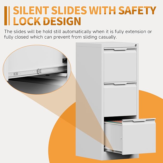 - 【Silent Slides With Safety Lock Design】The slides of Firstsky Office File Cabinets will be hold still automatically when it is fully extension or fully closed which can prevent from sliding casually.And it is virtually silent when you use the drawer. The sturdy material gives it a longer life span.