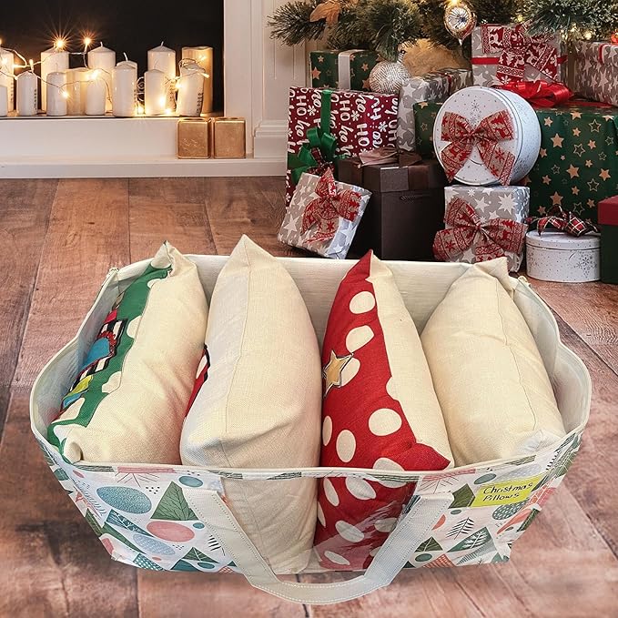 VENO 4 Pack Moving Bags, Large Christmas Storage Bins with lids, Packing Supplies for College, Alternative to Moving Boxes, Foldable, Heavy-Duty Tote, Christmas Pattern (Pastel Forest, 4 Pack)