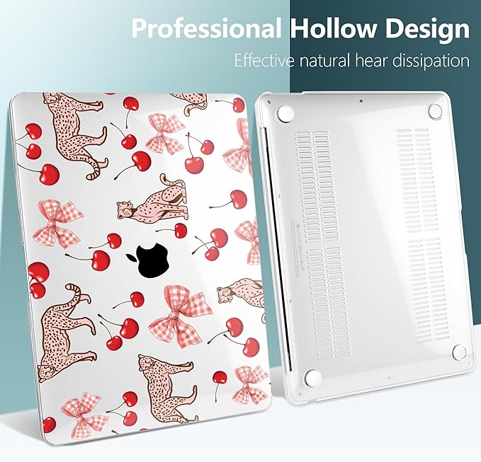 DONGKE for MacBook Air 13 Inch Case 2021-2018, Compatible with A2337 M1 A2179 A1932 Support Retina Display & Touch ID, Hard Shell Plastic Cover with Keyboard Skin - Cheetah Cherry