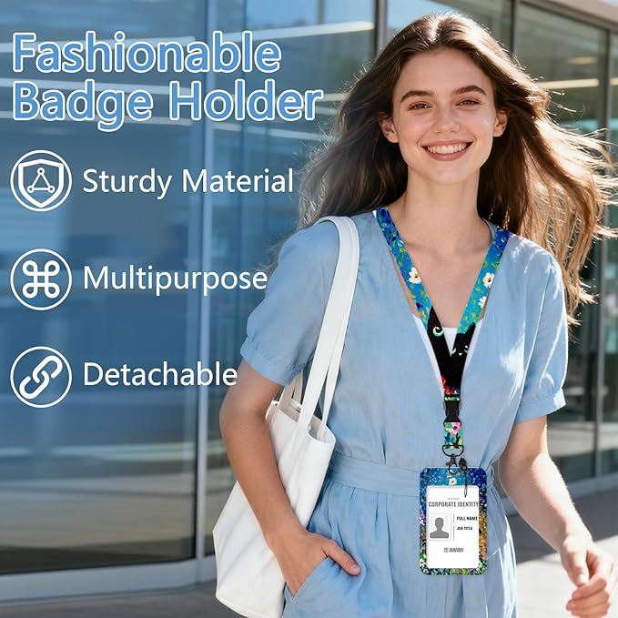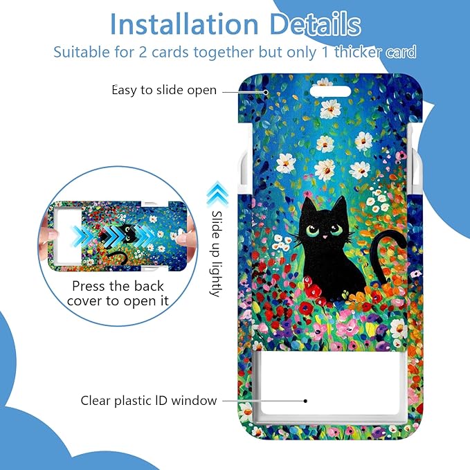- 【Unique Design】Cute badge lanyard is with its special design: Oil painting flower cat pattern.Leave behind the simple,stereotypical card clips and upgrade to our fashionable and fun card holder that will add a pop of vivid colors to your cards and keys,breathing new life into your daily routine
