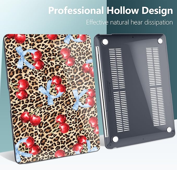 DONGKE for MacBook Air 13 Inch Case 2021-2018, Compatible with A2337 M1 A2179 A1932 Support Retina Display & Touch ID, Hard Shell Plastic Cover with Keyboard Skin - Cherry & Leopard