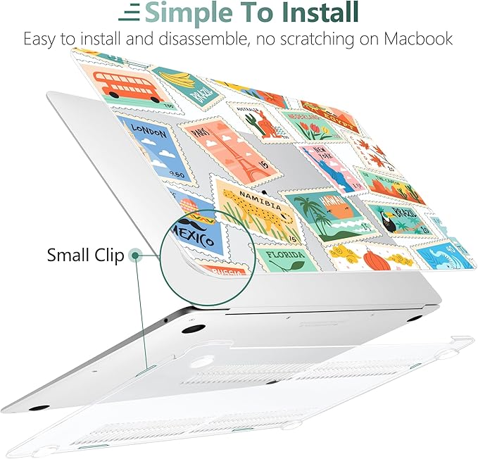 DONGKE for MacBook Air 13 Inch Case 2021-2018, Compatible with A2337 M1 A2179 A1932 Support Retina Display & Touch ID, Hard Shell Plastic Cover with Keyboard Skin - Post Stamps