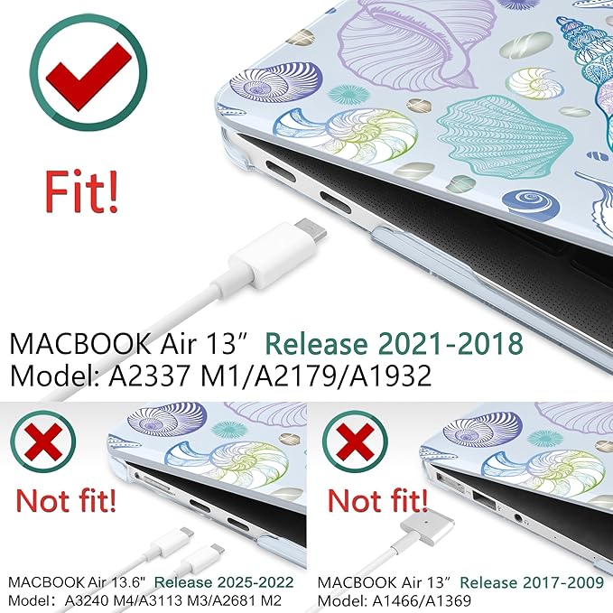- Compatibility: Only designed for MacBook Air 13.3 inch 2021 2020 2019 and 2018 with Touch ID and Retina Display (Models M1 A2337, A2179, A1932). Not compatible with MacBook Air 13.6-inch (M4/M3/M2 chip, 2025-2022). Check your device model before purchasing.