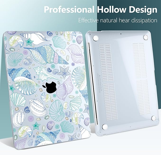 DONGKE for MacBook Air 13 Inch Case 2021-2018, Compatible with A2337 M1 A2179 A1932 Support Retina Display & Touch ID, Hard Shell Plastic Cover with Keyboard Skin - Sea Shells