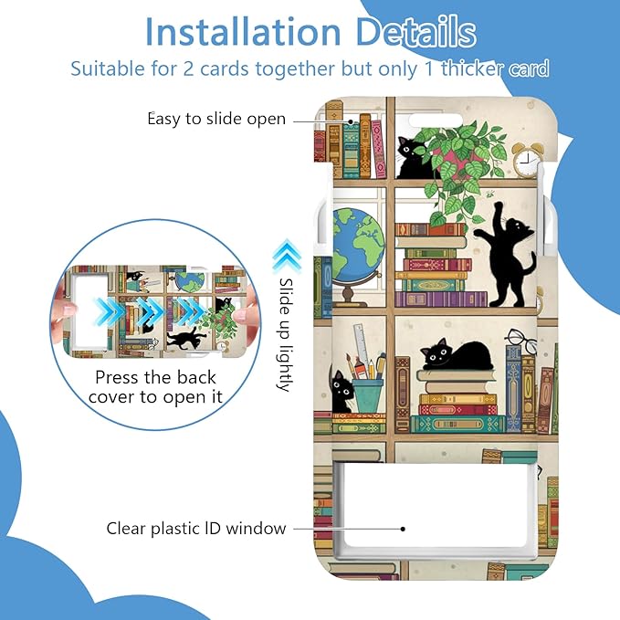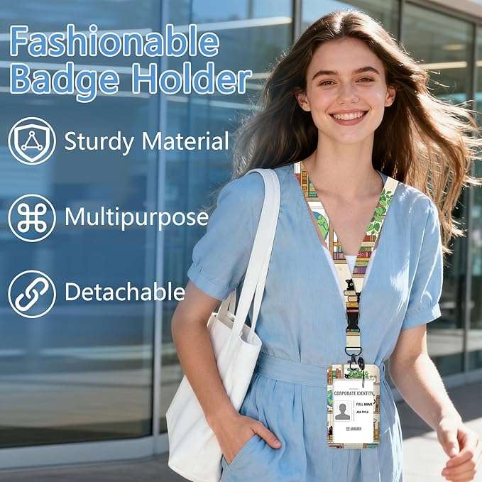 - 【Unique Design】Cute badge lanyard is with its special design:Cat Bookshelf pattern.Leave behind the simple,stereotypical card clips and upgrade to our fashionable and fun card holder that will add a pop of vivid colors to your cards and keys,breathing new life into your daily routine