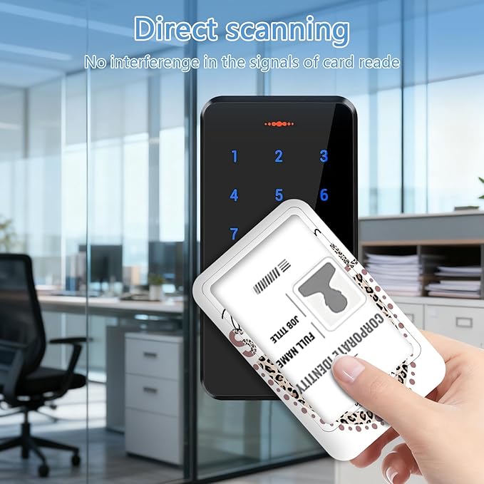 - 【Convenient and Quick】The double-sided sliding cover design is beautiful, sturdy and lightweight. The scannable transparent film is against water and stain-against eliminating the need to scratch the ID card cover each time the ID card is used,quickly swipe your card to make punching in and out faster