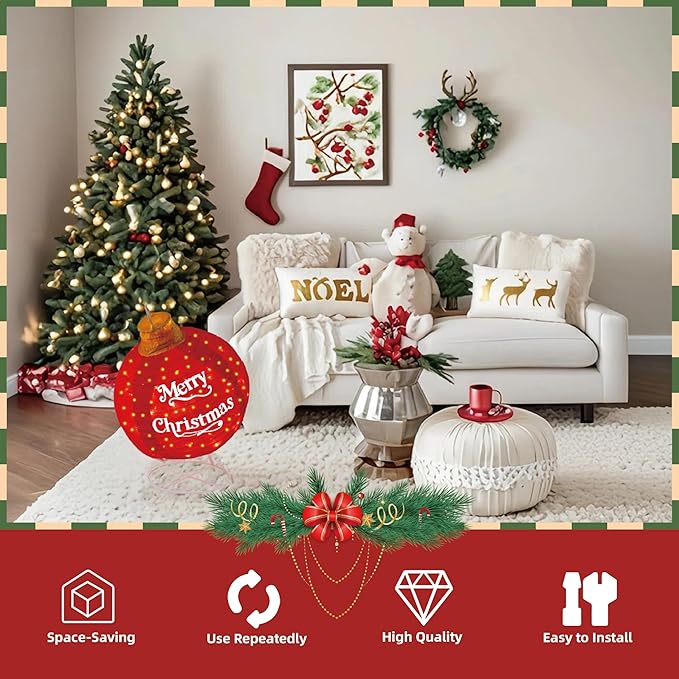- Effortless Setup & Compact Storage:Features a clever pop-up design that unfolds in seconds with no tools required. After the holidays, it just as easily flattens down into a slim, space-saving disk for convenient storage