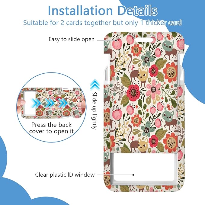 - 【Unique Design】Cute badge lanyard is with its special design:Flower cat pattern.Leave behind the simple,stereotypical card clips and upgrade to our fashionable and fun card holder that will add a pop of vivid colors to your cards and keys,breathing new life into your daily routine