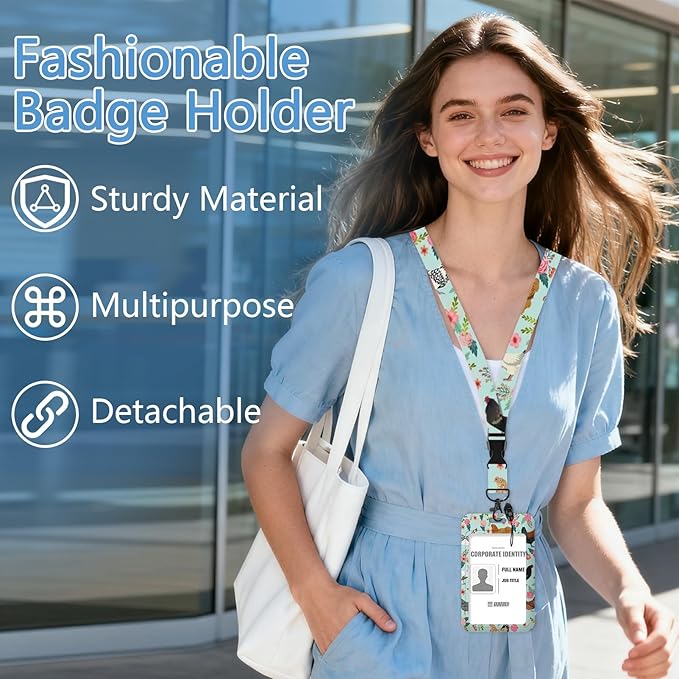- 【Unique Design】Cute badge lanyard is personalized with its special design:funny chickens pattern.Leave behind the simple,stereotypical card clips and upgrade to our fashionable and fun card holder that will add a pop of vivid colors to your cards and keys,breathing new life into your daily routine