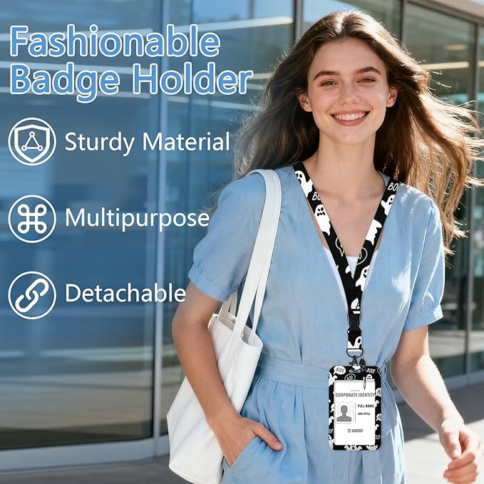 - 【Unique Design】Cute Halloween badge lanyard is with its special design:Ghost pattern.Leave behind the simple,stereotypical card clips and upgrade to our fashionable and fun card holder that,will add a pop of vivid colors to your cards and keys, breathing new life into your daily routine