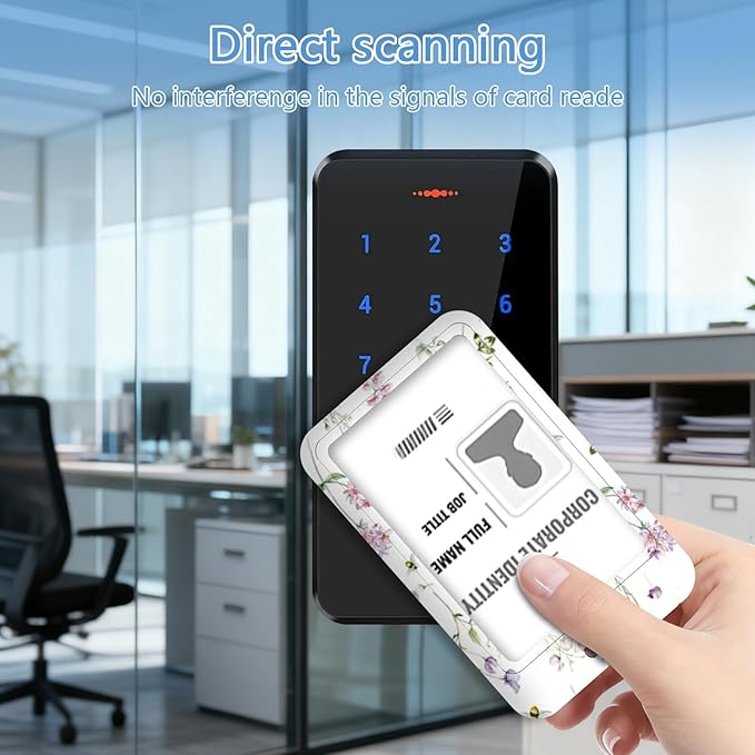 - 【Convenient and Quick】The double-sided sliding cover design is beautiful, sturdy and lightweight. The scannable transparent film is against water and stain-against eliminating the need to scratch the ID card cover each time the ID card is used,quickly swipe your card to make punching in and out faster