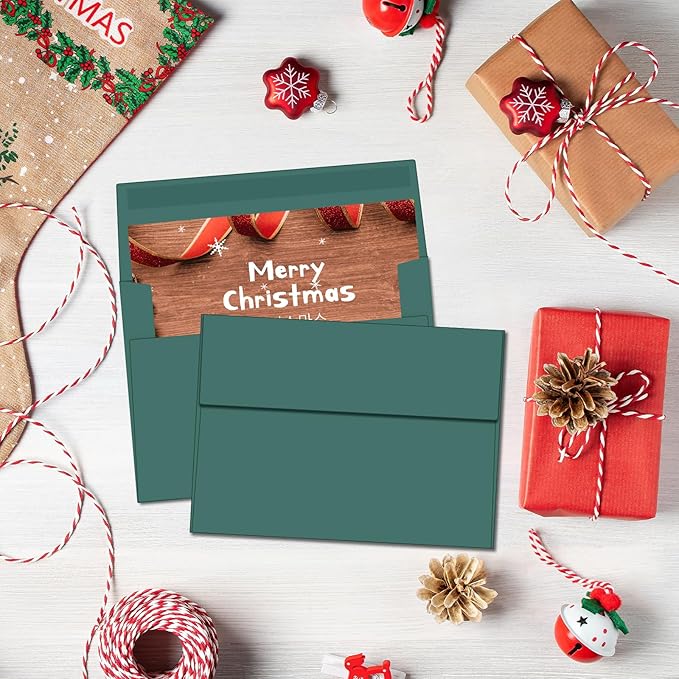 100 Packs 5x7 envelopes, A7 White Envelopes for Invitations Self Seal Printable for Greeting Cards, Weddings, Invitations, Photos, Postcards, Mailing (Green)