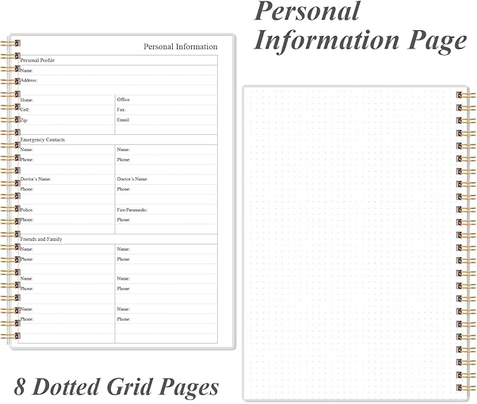 - A5 SIZE - This undated daily organizer size of 8.5 x 5.8 inch, perfect size to fit in your bag.1 quick reference page, contact pages, important dates page, and 75sheet (150 page) daily plan & notes,8 dotted grid pages, Undated appointment planner makes it easy for you to start the planner at any time.