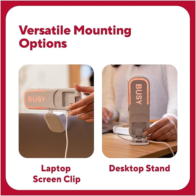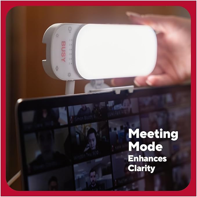 - Busy Mode: Maintain your flow without interruptions using the BUSY do-not-disturb signal featuring edge-lit feature displays across all light modes​. Meeting Mode: Look your best with adjustable color and brightness options for clear, shadow-free meetings​