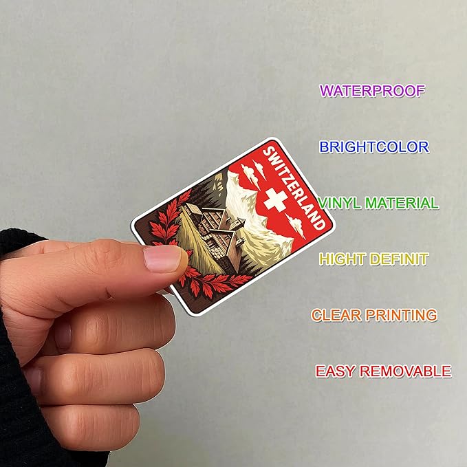 100 PCS Switzerland Stickers Pack, Vinyl Waterproof Decals of Zurich Alps Matterhorn Swiss Flag Cheese Chocolate Travel Souvenirs, Gift for Kids Teens Adults Scrapbook Laptop Water Bottle Car
