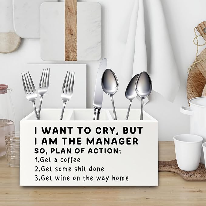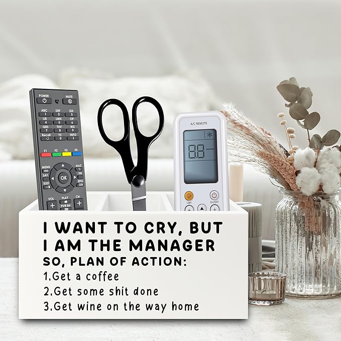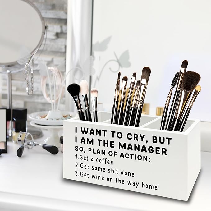 Funny Pen Office Pencil Holder Organizer for Desk, Manager Gifts for Women Men, Funny Coworker Gifts Wooden Box Sign for Home Office Desk Tabletop Decorations