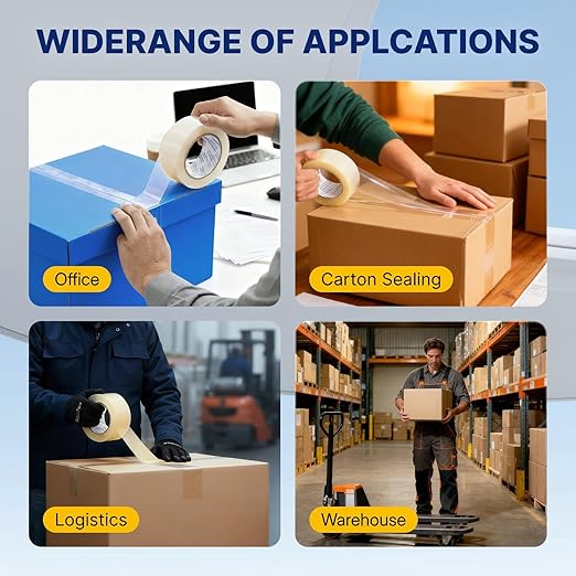 - clear hot melt packaging tape rolls for sealing boxes, securing address labels, and more