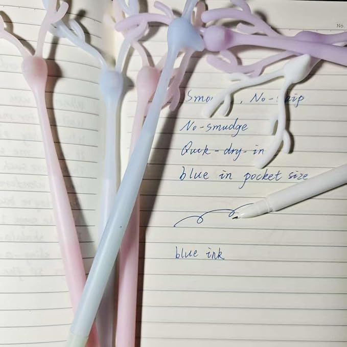 - COMFORTABLE SILICONE GRIP: Each desk decor pen is equipped with a soft, squishy silicone barrel, often in a pastel color. This provides a comfortable, non-slip grip that reduces hand fatigue during long writing or study sessions