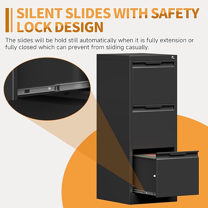 - 【Silent Slides With Safety Lock Design】The slides of Firstsky Office File Cabinets will be hold still automatically when it is fully extension or fully closed which can prevent from sliding casually.And it is virtually silent when you use the drawer. The sturdy material gives it a longer life span.