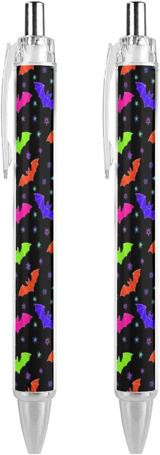 Cute Ballpoint Pens for Women, 0.5mm Refillable Black Ink Writing Pens with Comfortable Grip Halloween Cool Bats Ball Point Pen Writing Supplies 2 Pcs