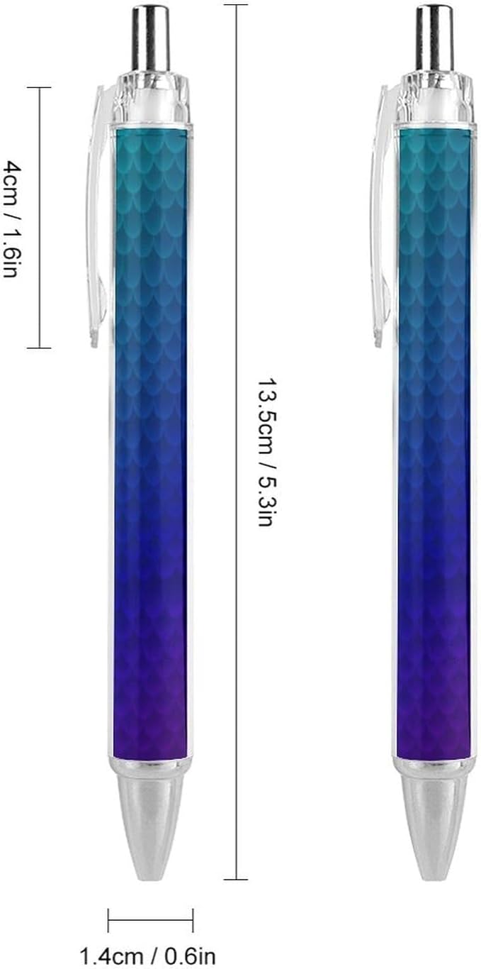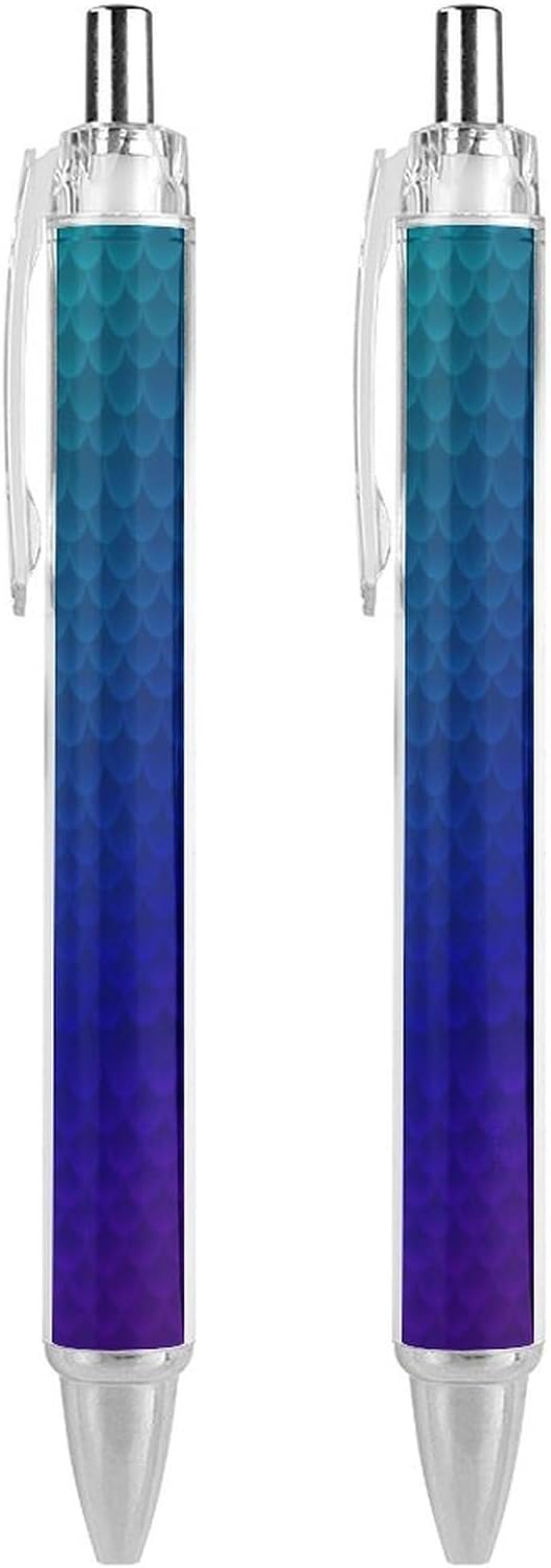 Cute Ballpoint Pen Refillable Black Ink 0.5 mm Ball Point Pens Ocean Sea Blue Mermaid Fish Scale Retractable Pens Writing Accessories for Teacher Writer, 2 Pcs