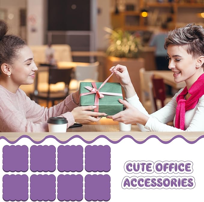 - Package Contents: the package contains 8 purple scalloped sticky notes, 1 colors, 1 book for each color, 30 sheets per book, a total of 240 sheets, each sheet is about 7.6 x 7.6 cm/ 3 x 3 inches; Adequate quantity and suitable size can easily meet your daily writing needs, you can also share with family and friends