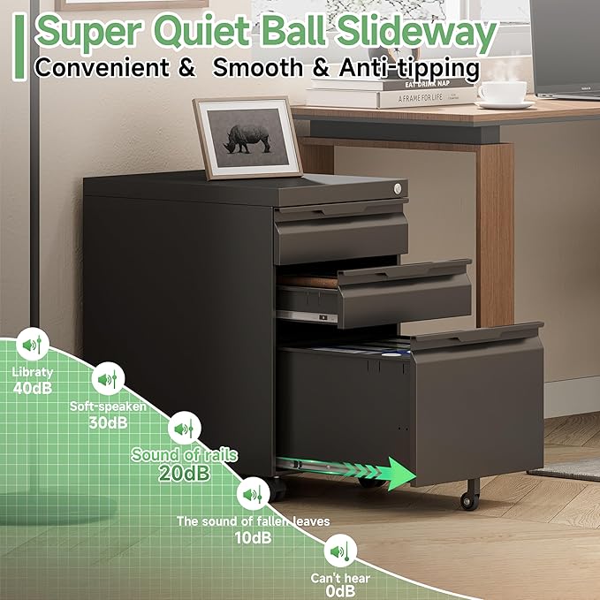 - 【Quiet & Smooth Slide Rails】 No more struggling to open jammed drawers or stuck files with each drawer equipped with precision ball-bearing glides for easy opening, closing, and everyday use.Low noise levels allow you to work from home without worrying about disturbing your family's rest.