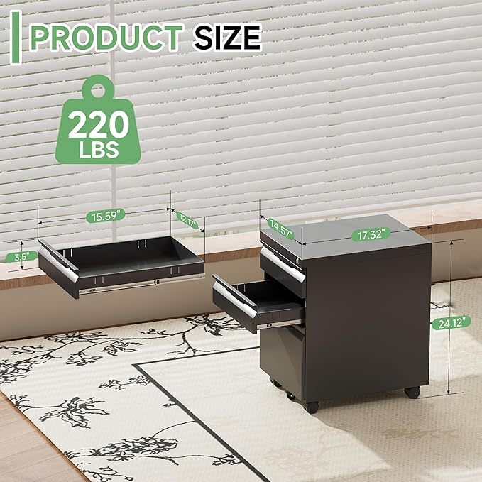 - 【Advanced Security&Anti-Tipping Design】 The metal mobile filing cabinet comes with a lock to ensure the safety and security of your important documents and confidential information.To enhance overall stability and safety, the bottom of the large drawer is equipped with an anti-tipping wheel. This design feature ensures that this 3 drawer file cabinet remains secure and balanced, even when the large drawer is fully extended. By preventing accidental tipping, it provides peace of mind and minimizes the risk of any potential accidents or damage.