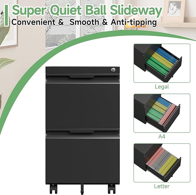 - 【Professional Storage Solutions】The vertical mobile file cabinet offers plenty of storage space for your office needs. It can storage letters/legal/A4/F4 sized files, keeping them neat and organized. Each drawer with lock is equipped with adjustable hanging rails, allowing you to customize the organization of your files.