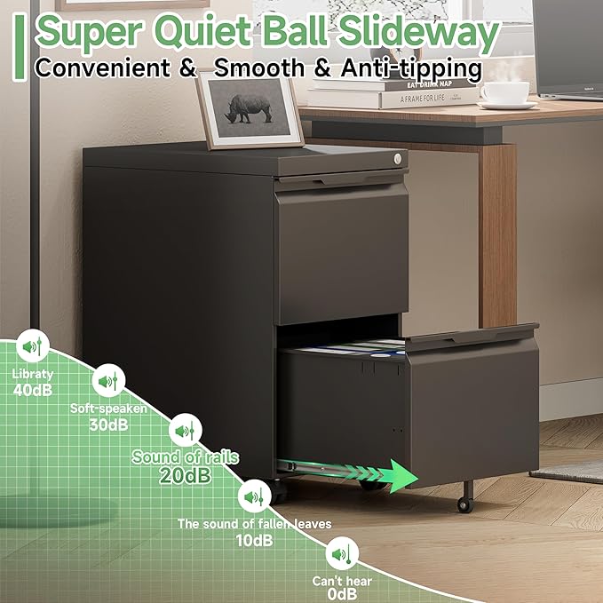 - 【Quiet & Smooth Slide Rails】 No more struggling to open jammed drawers or stuck files with each drawer equipped with precision ball-bearing glides for easy opening, closing, and everyday use.Low noise levels allow you to work from home without worrying about disturbing your family's rest.
